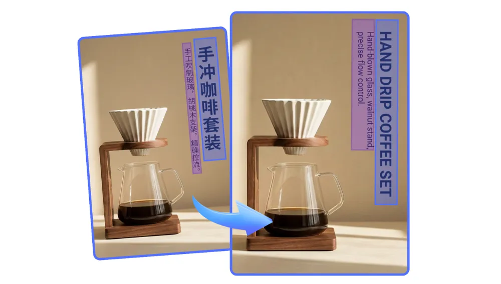 Translated text is seamlessly replaced while keeping the original fonts, colors, layout, and background, ensuring professional and visually consistent images