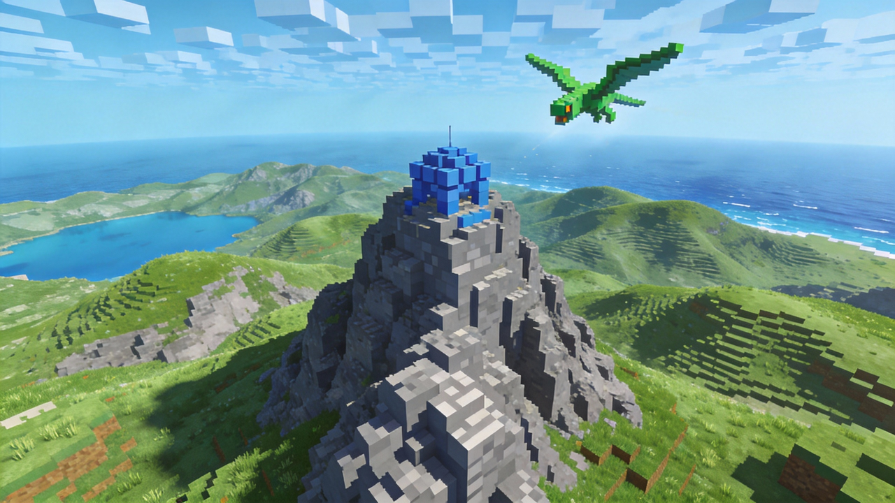 Begin with a character in AR glasses, shift from third-person to first-person, and fly through a blue universe, pixel world, and green-textured planet, with immersive camera movement.