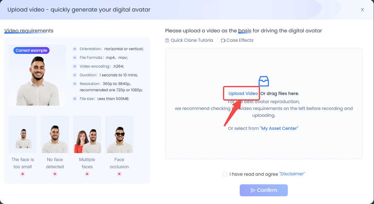 To get started, prepare a short clip of yourself (at least 5 seconds) speaking naturally. The best part? You don’t need fancy equipment — a simple selfie video from your smartphone works perfectly.