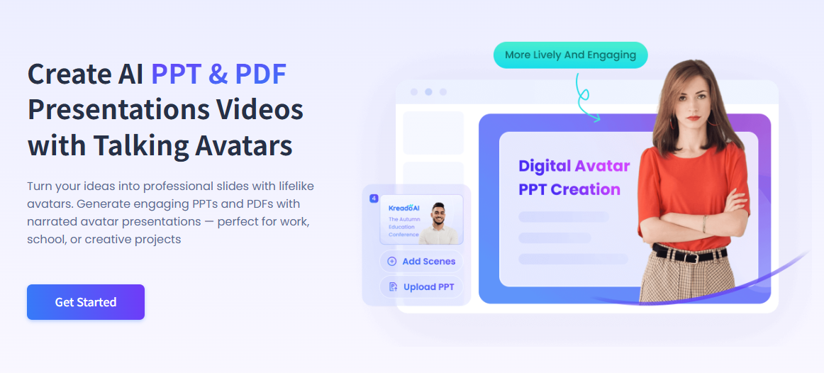 Crreo can only produce simple clips, making large-scale training updates time-consuming. KreadoAI uses the PPT/PDF Avatar Video feature to convert PPT decks into avatar-led videos, clones expert voices, and localizes content into 40+ languages. This reduces production time by 70% while making training more engaging with human-like avatars that capture attention.