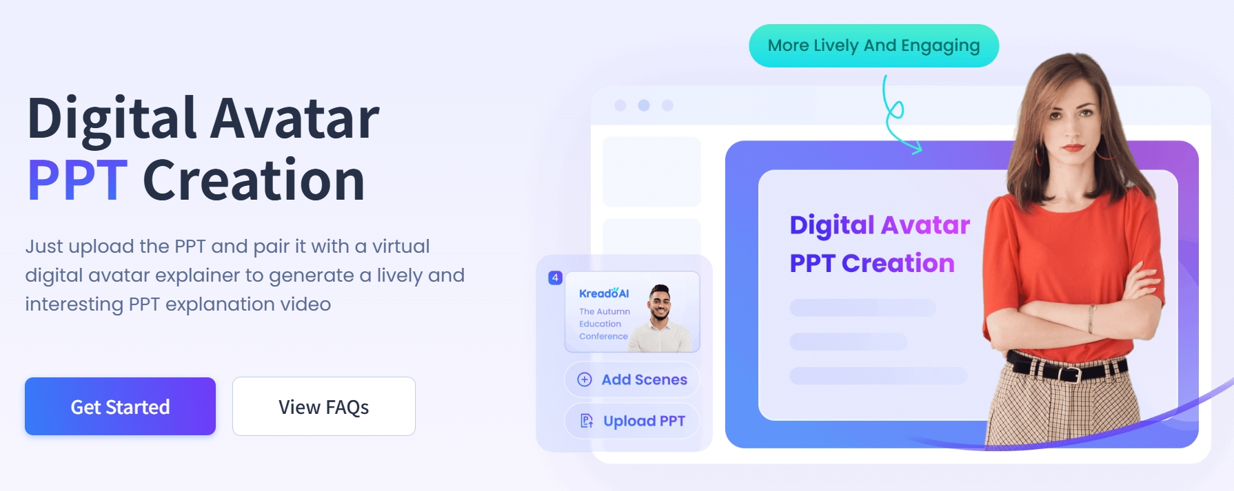 KreadoAI provides a unique PPT-to-video feature that automatically converts slide presentations into narrated AI videos. This is especially powerful for trainers and educators who want to turn traditional slide decks into dynamic video content with AI voiceovers and avatars.