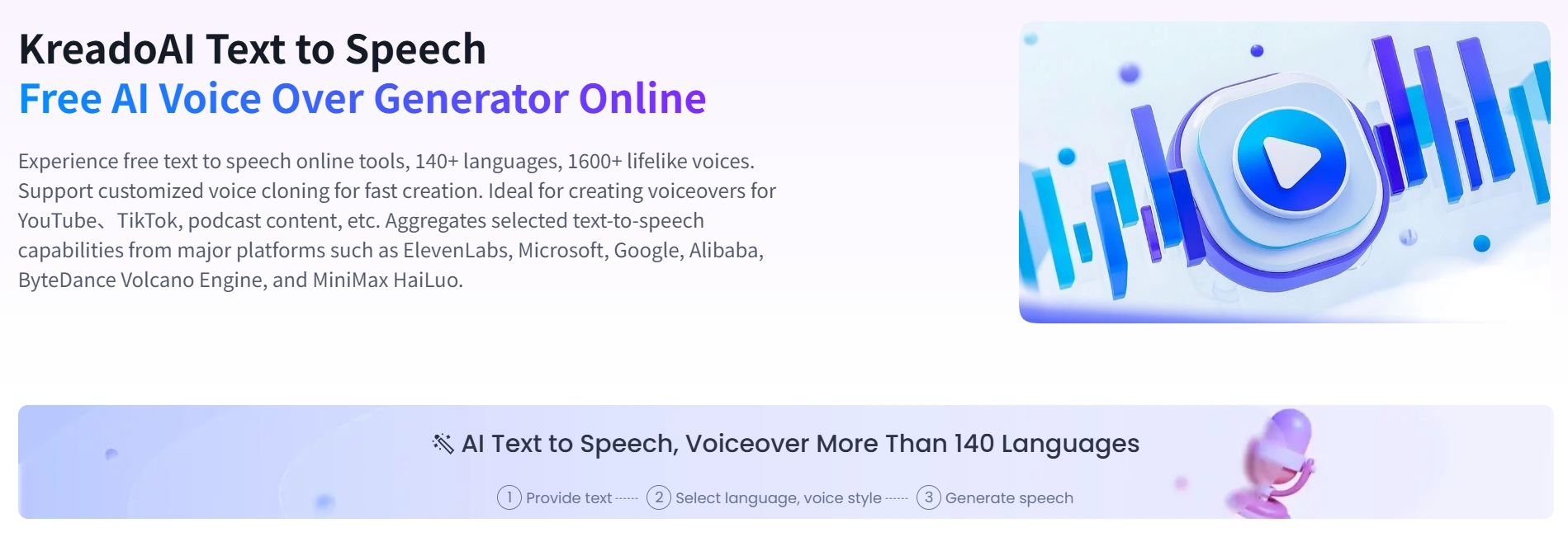 KreadoAI supports over 140+ languages and 1600+ AI voices, enabling natural-sounding speech with accurate lip-syncing for digital avatars. This is ideal for businesses needing localized video content across global markets.