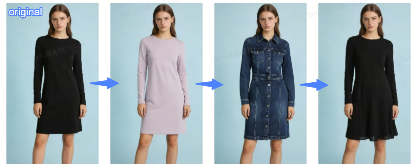 However, traditional clothing photoshoots are time-consuming, labor-intensive, and costly. Showing multiple colors or styles for one garment often requires repeated reshoots.