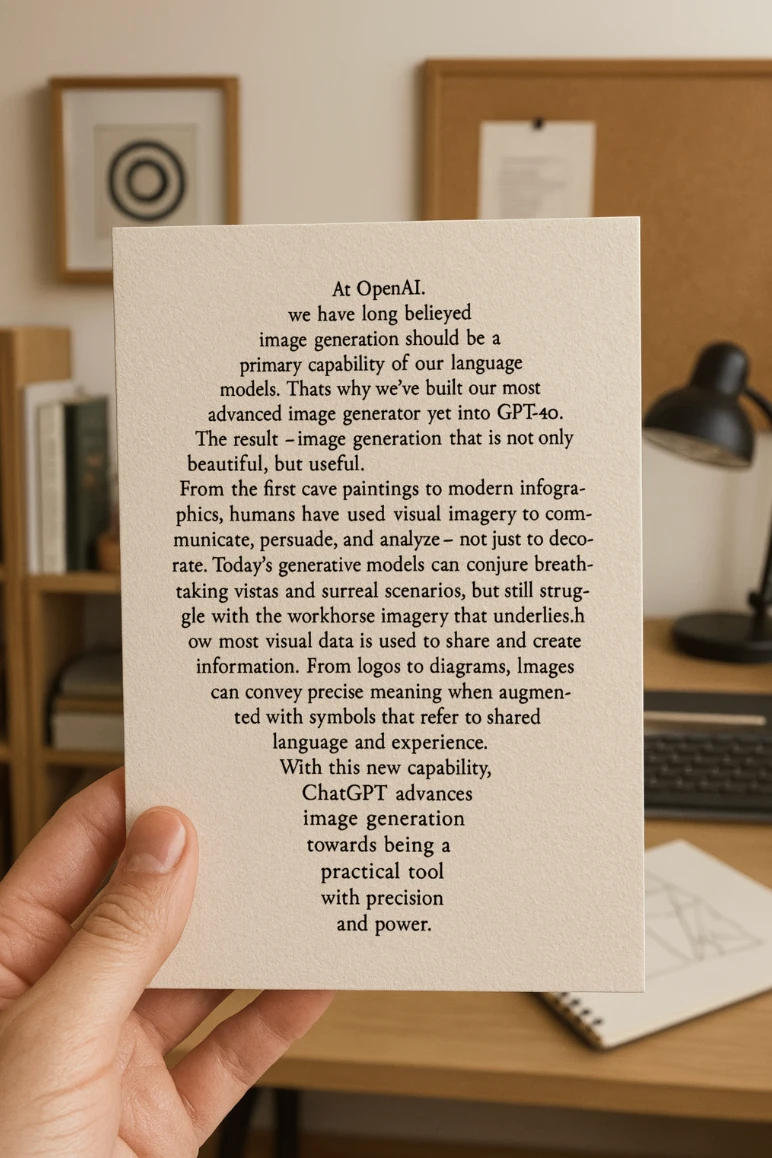 Compared to blurry, distorted text in previous AI image generation, the GPT-image model optimizes in-image text—ensuring clear fonts and natural layout.
