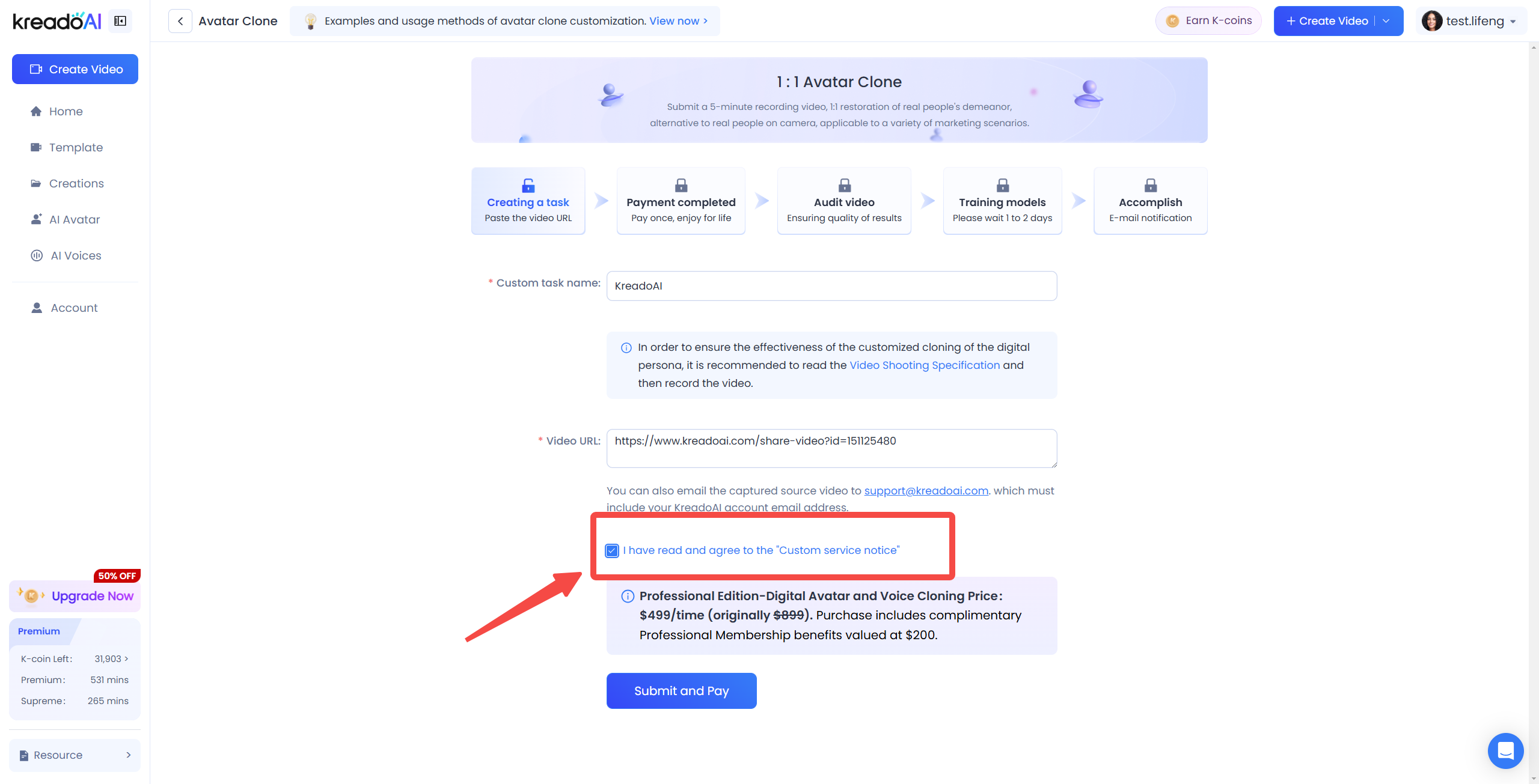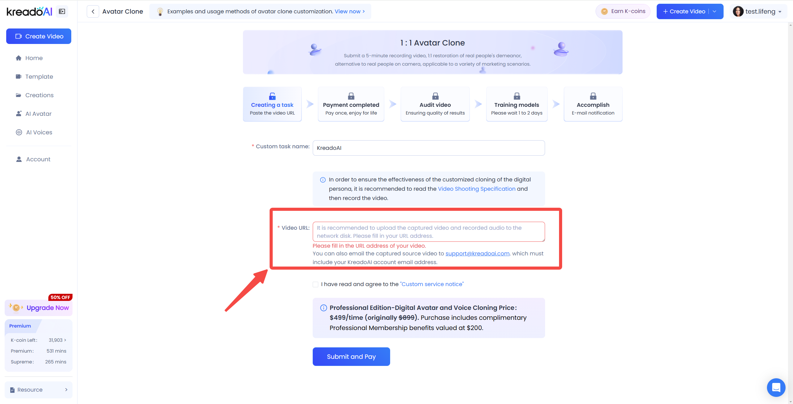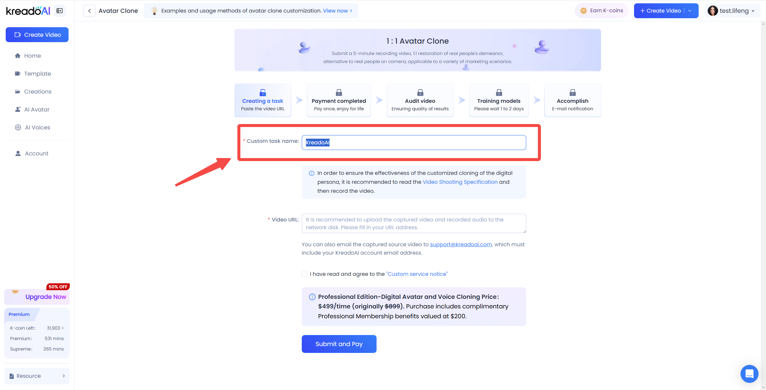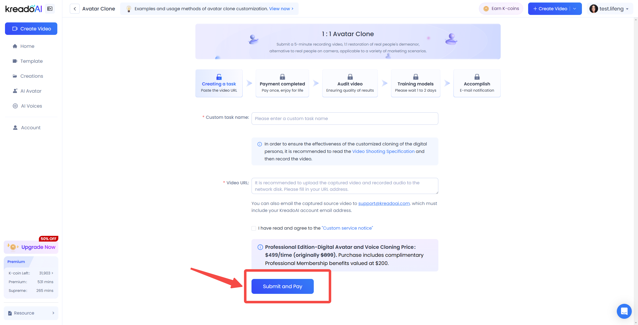 If you have questions about the AI avatar cloning submission process, contact your dedicated support at support@kreadoai.com for one-on-one guidance.