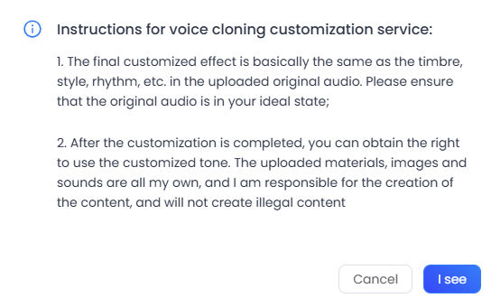 Ensure you have the legal right to use the uploaded audio and agree to KreadoAI’s cloning policy.