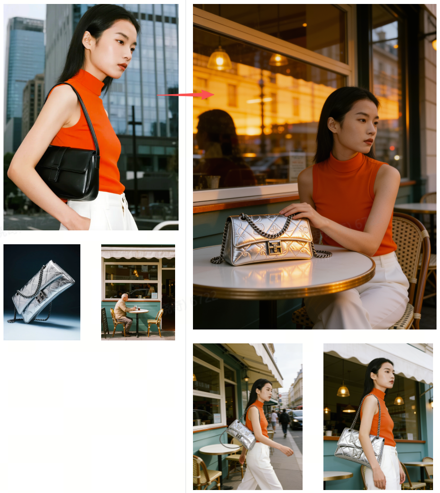 The model maintains stable subjects, clear details, and coherent environments across multiple images, greatly improving workflows such as:
