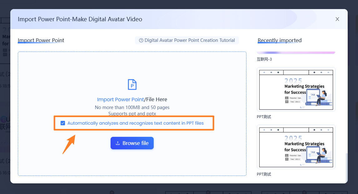 2️⃣ Select "Automatically analyzes and recognizes text content in PPT files"