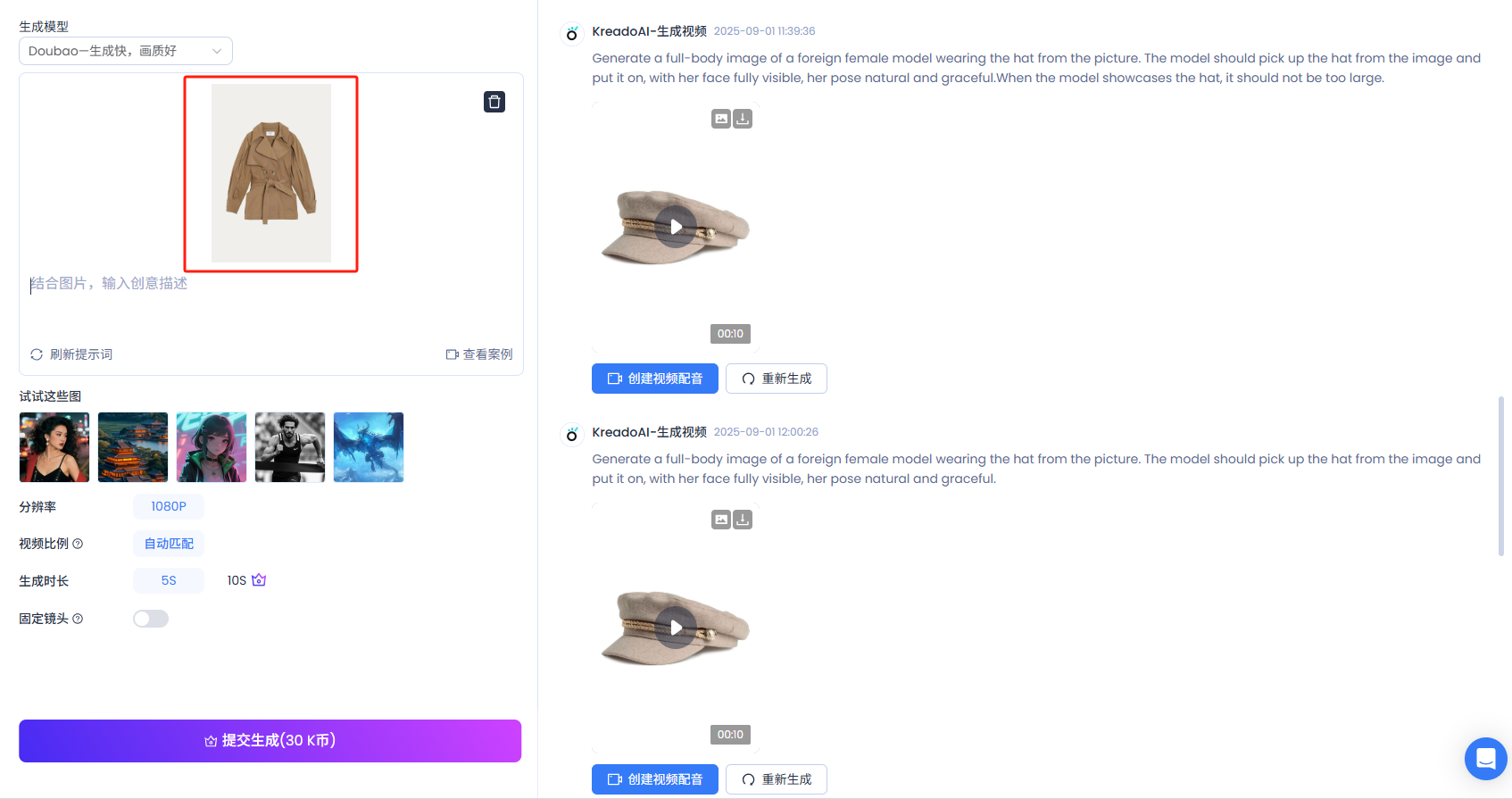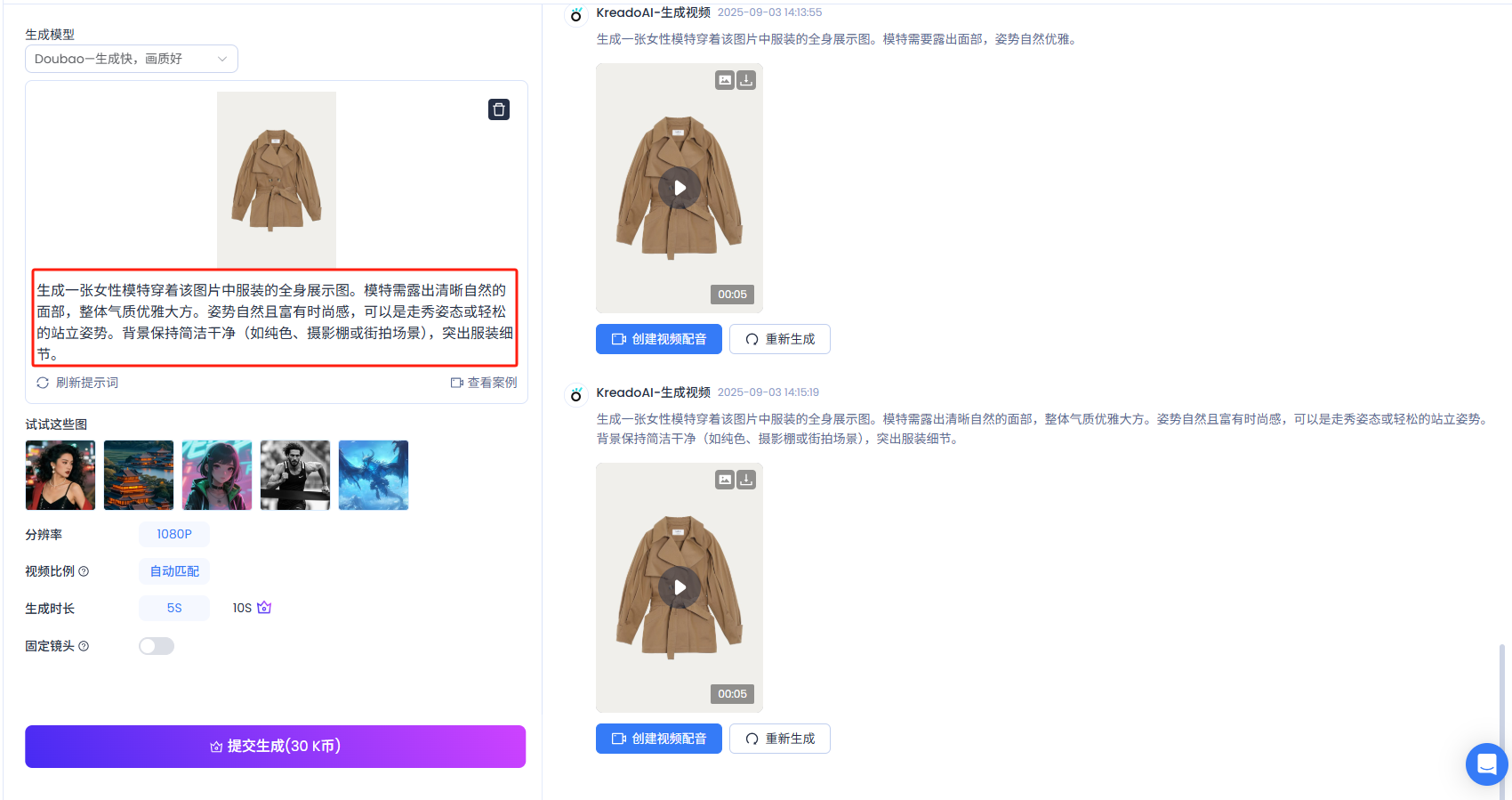 现在,立即体验KreadoAI免费AI图生视频生成器吧,让你的服装图片快速转化为高质量电商视频!