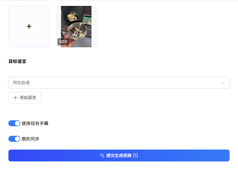 一键提交,等待系统生成的新语言版本,自动适配字幕和配音,省时省力。