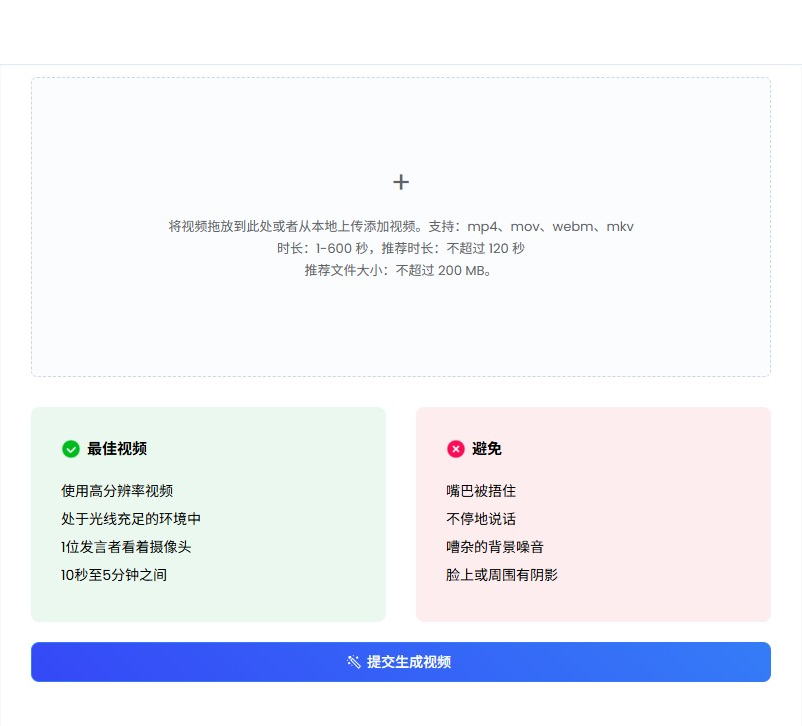 开启“唇形同步”选项,生成视频中的人物口型自动适配目标语言。