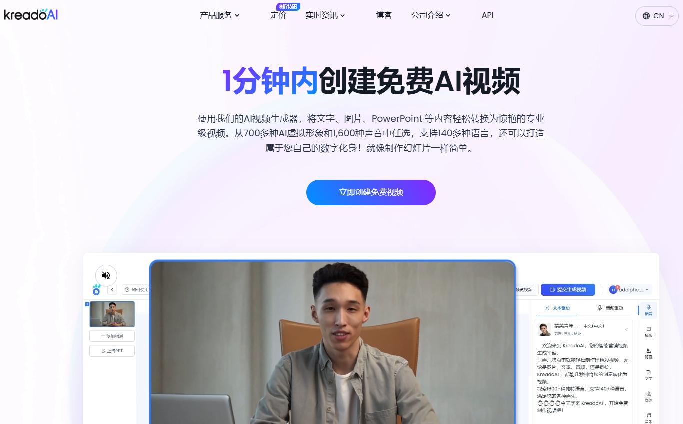 AI驱动的视频制作工具,如KreadoAI多语言数字人视频生成功能,可以让您从文本到视频的转换变得简单高效。以下是具体的制作步骤: