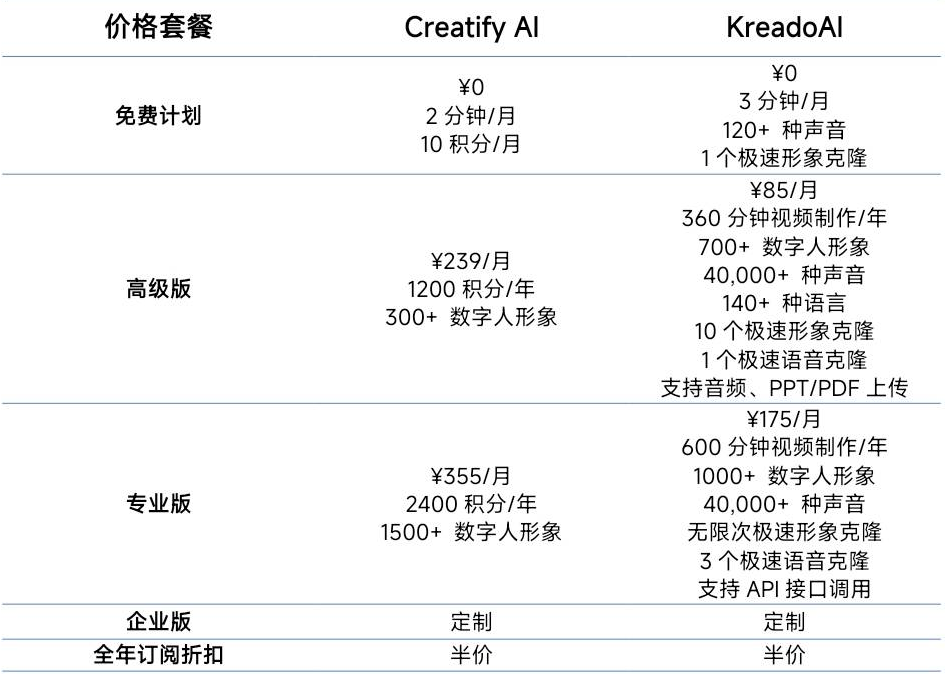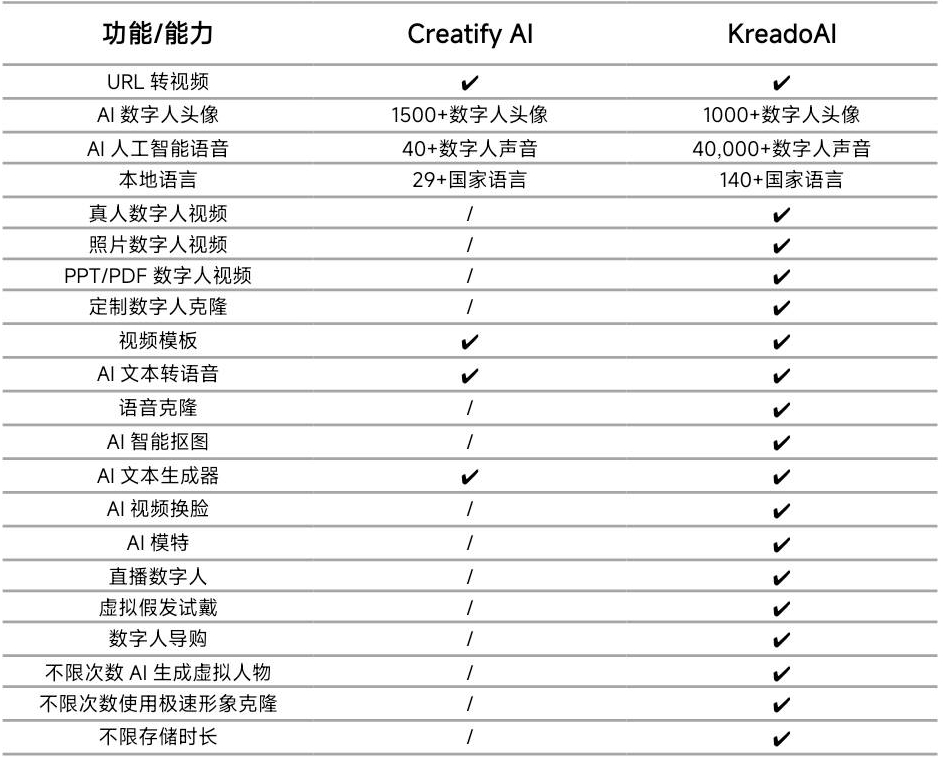 KreadoAI vs Creatify:主要功能对比
