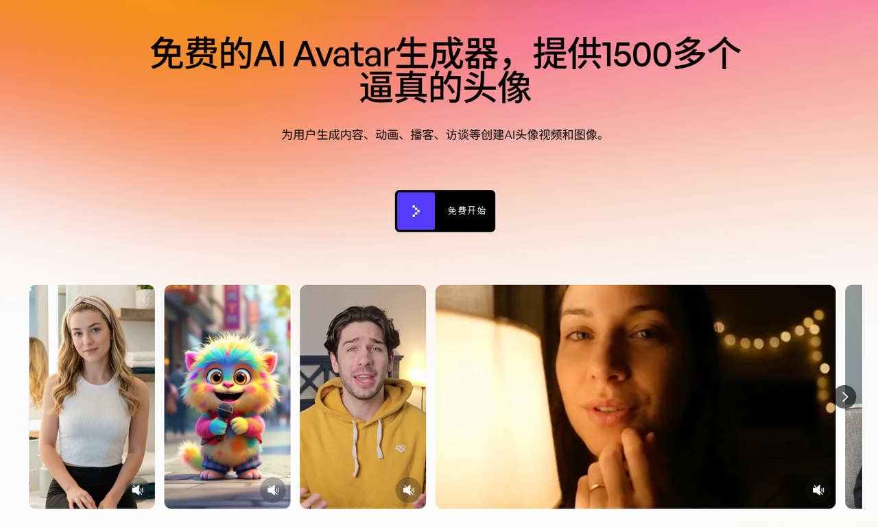 提供 1500+ 数字人,可从文本、照片或视频生成数字人。