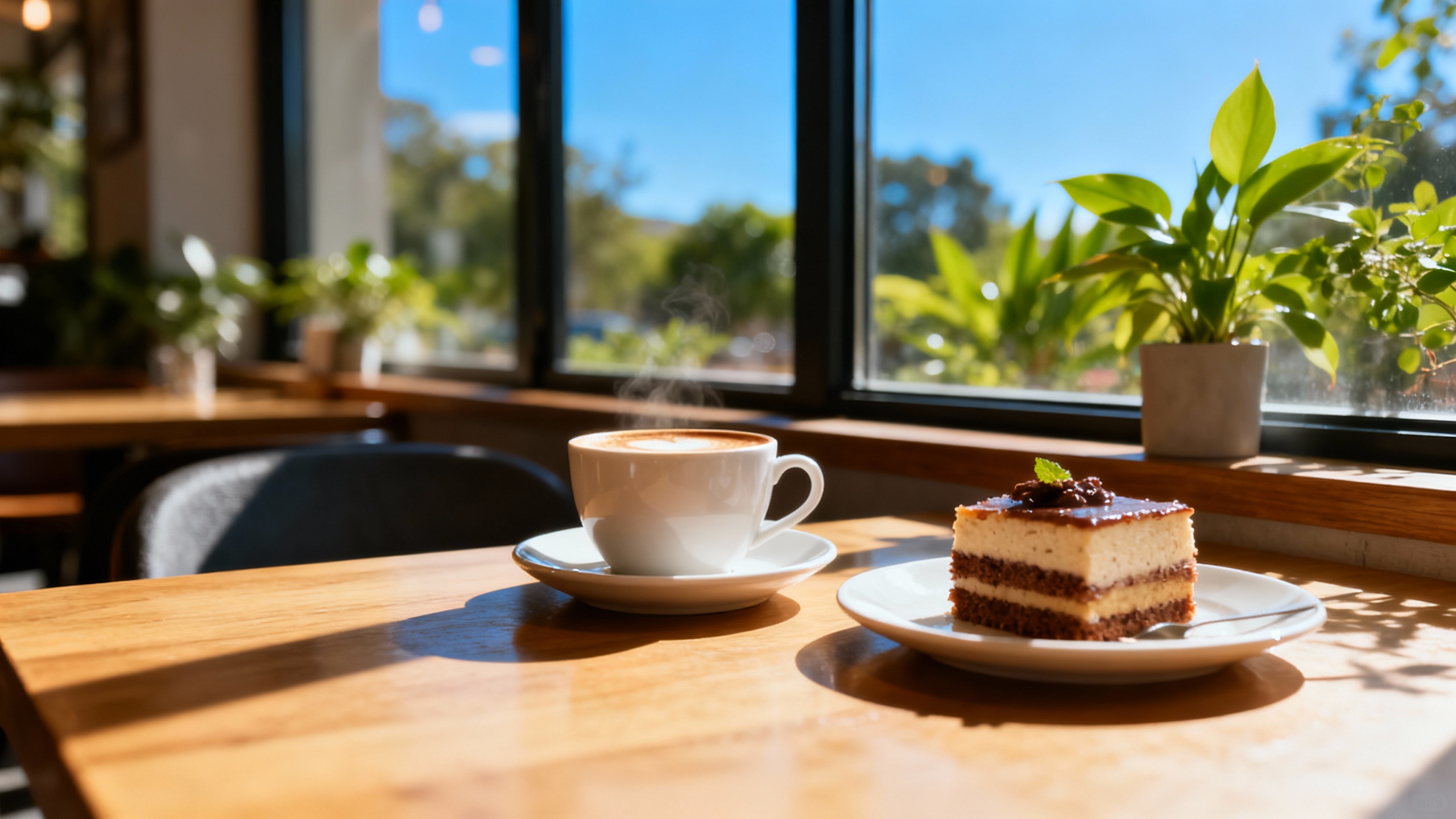 生成效果:生成清新自然的咖啡厅场景图,可直接用于社交媒体或设计素材。