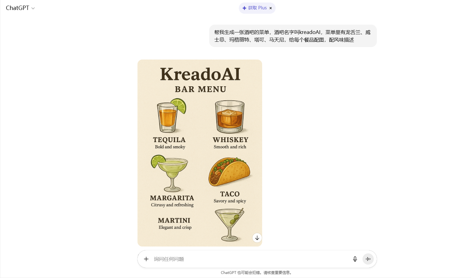 例如,你想为自己的餐馆制作一份菜单,没问题,输入菜品与风格提示词,GPT图像生成模型帮你快速生成。