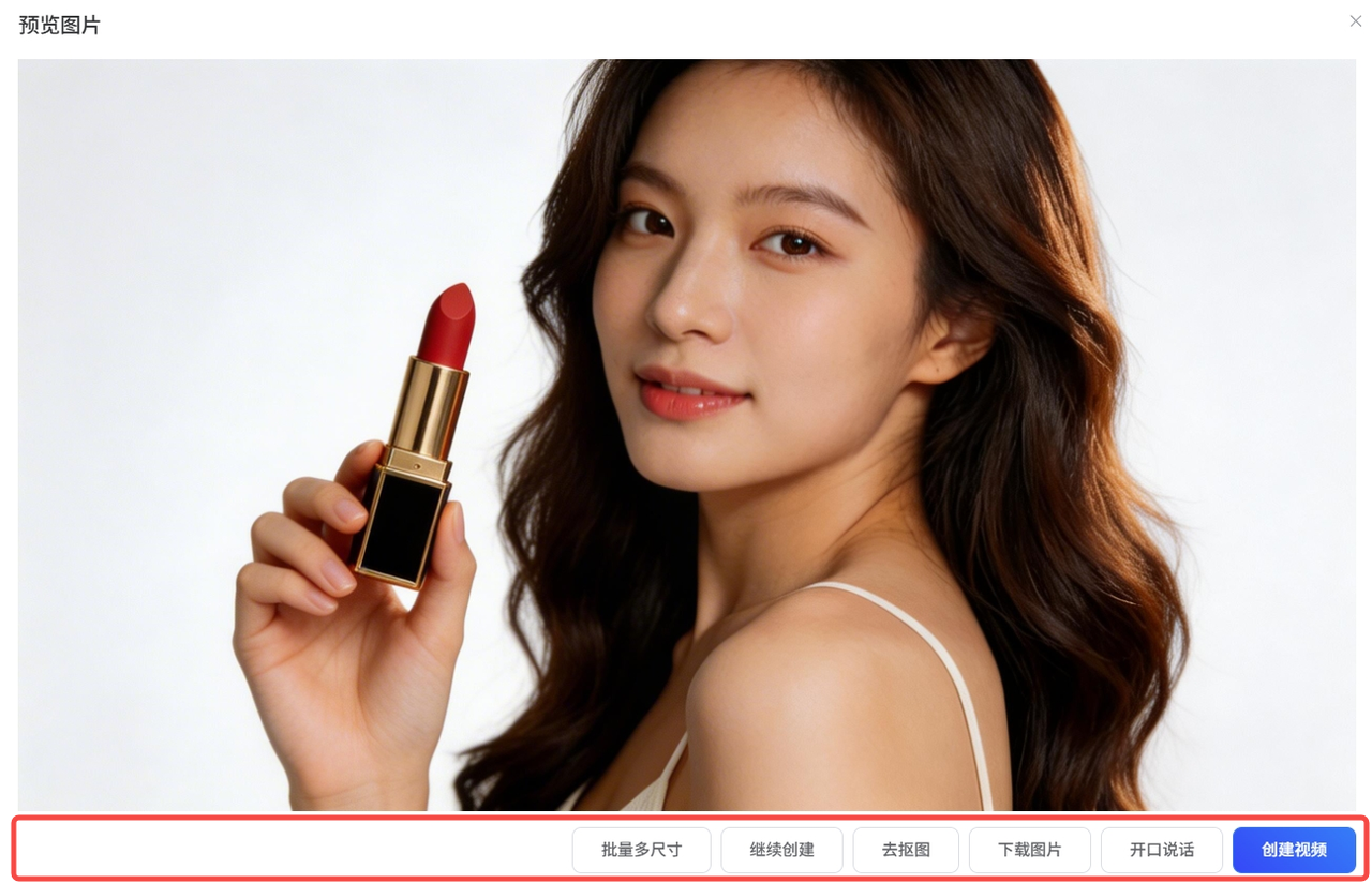 图片生成后,可对结果进行二次优化,确认满意后下载至本地,即可用于电商、社交媒体或广告等各类场景。