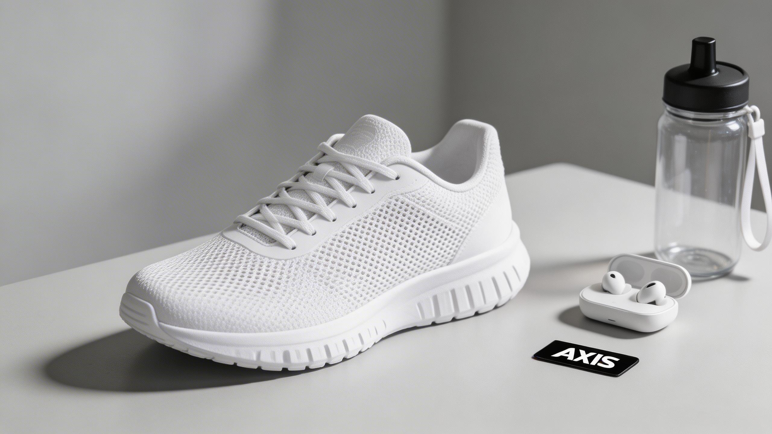 ✅ 正确示例:生成一张写实风格运动鞋广告图,白色运动鞋置于浅灰色极简桌面上,鞋面材质为网眼布和橡胶鞋底,鞋带整齐,侧面微微倾斜展示轮廓;光线从右侧斜射形成柔和阴影,突出鞋面纹理和鞋底立体感;背景模糊处理以突出主体,桌面上点缀少量品牌标识和配件(如运动水壶和耳机),拍摄角度为俯视45度,整体色调清新明亮,确保无模糊、无多余元素或变形,广告风格统一且视觉冲击力强。