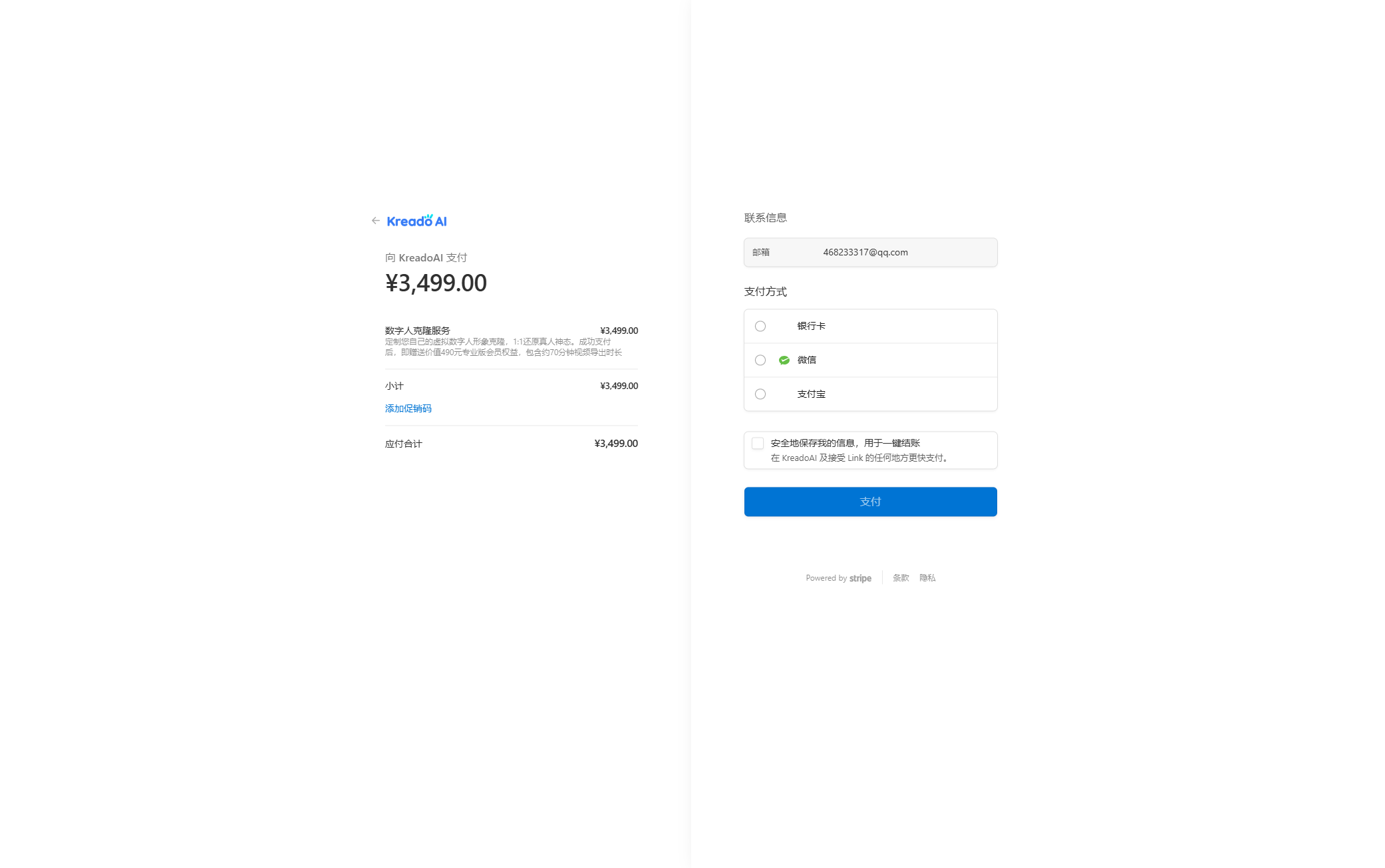 如对支付流程有疑问,请在付款前联系 support@kreadoai.com 了解详细信息。