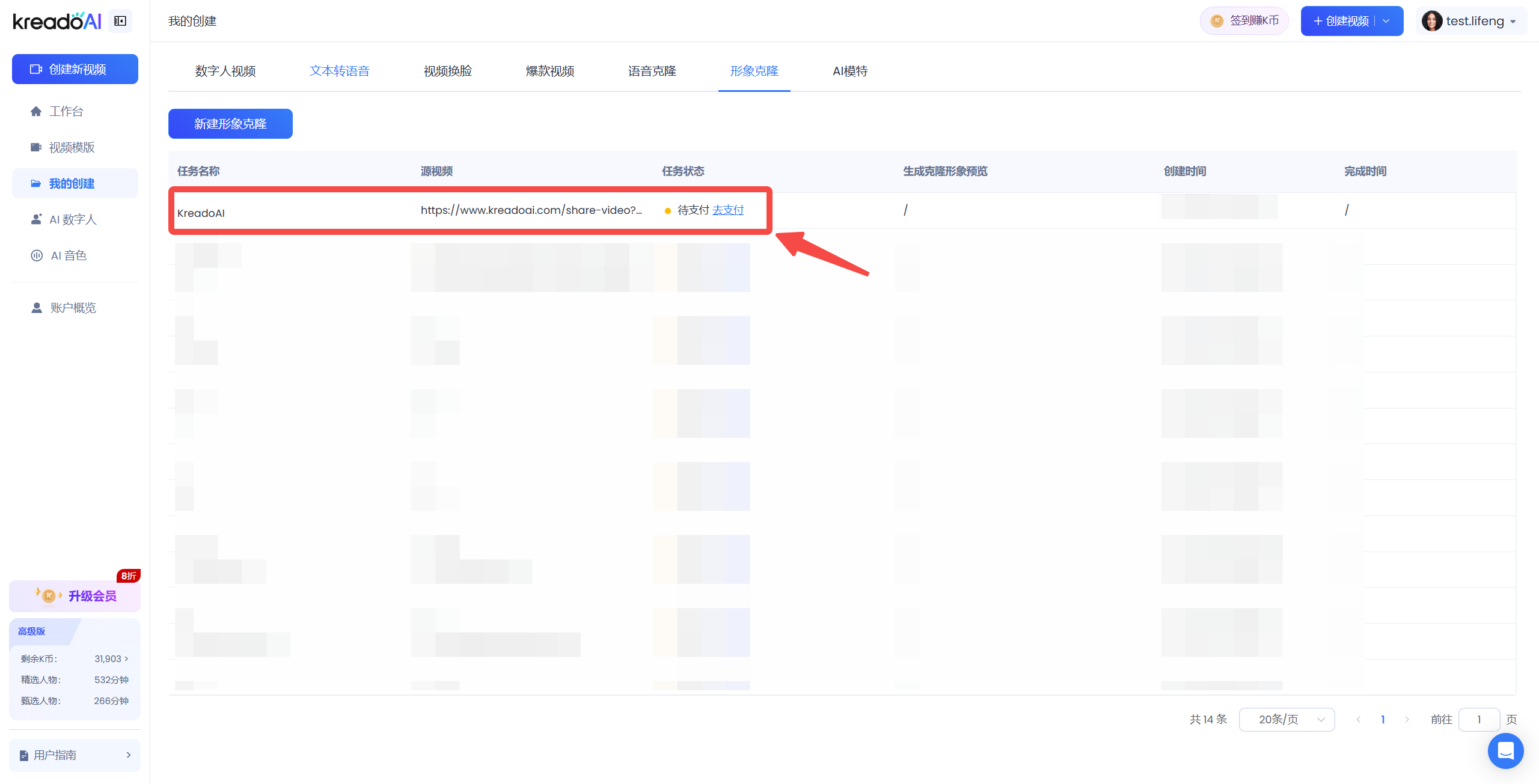 在“我的项目”中查看克隆进度。您还可以通过 support@kreadoai.com 联系专属客服,获取更多克隆详情。