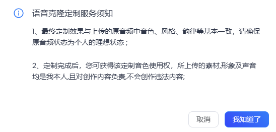 5️⃣ 确认你有权并同意克隆语音