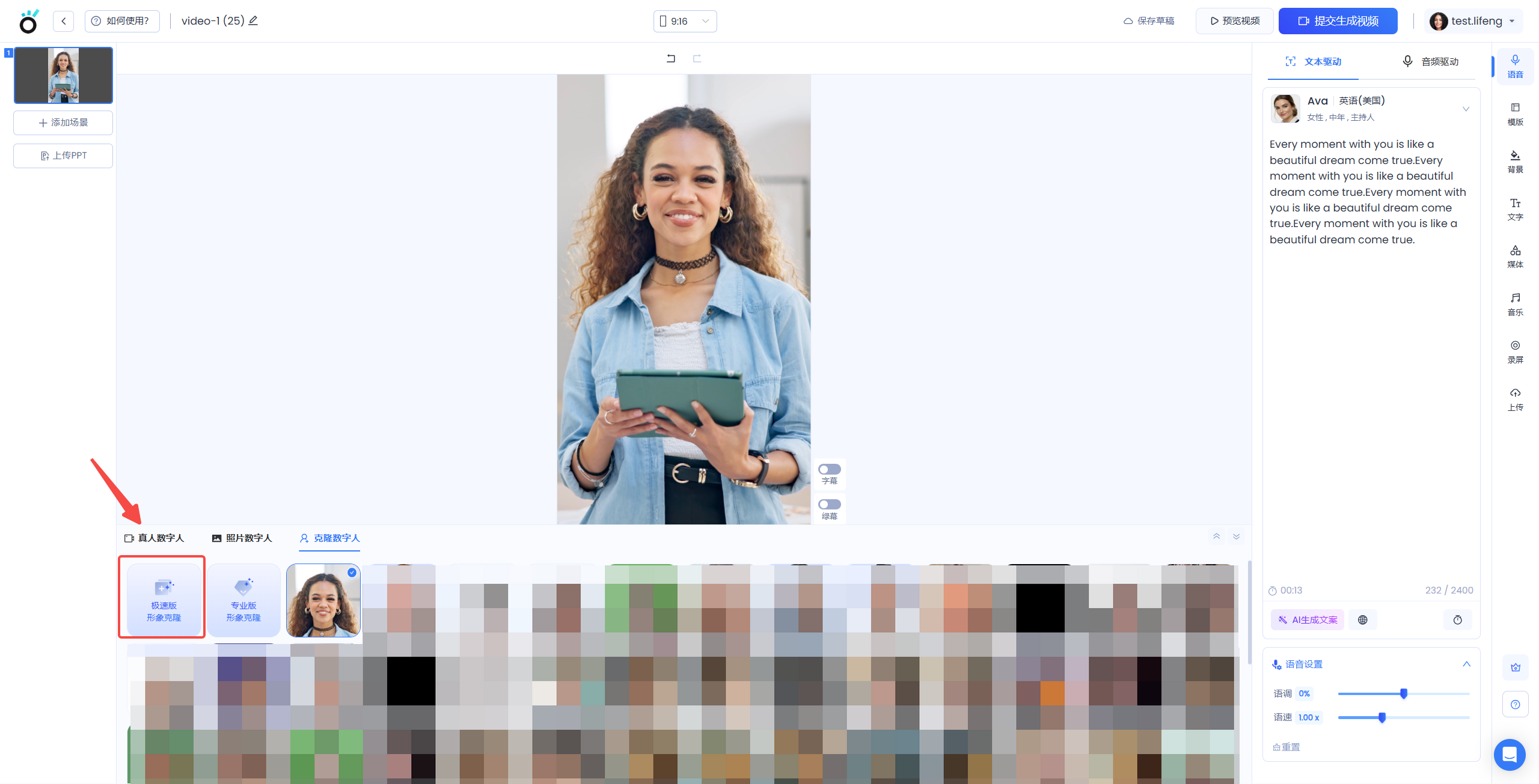 - 提交成功后,等待1分钟左右,系统将快速克隆您的数字人形象。