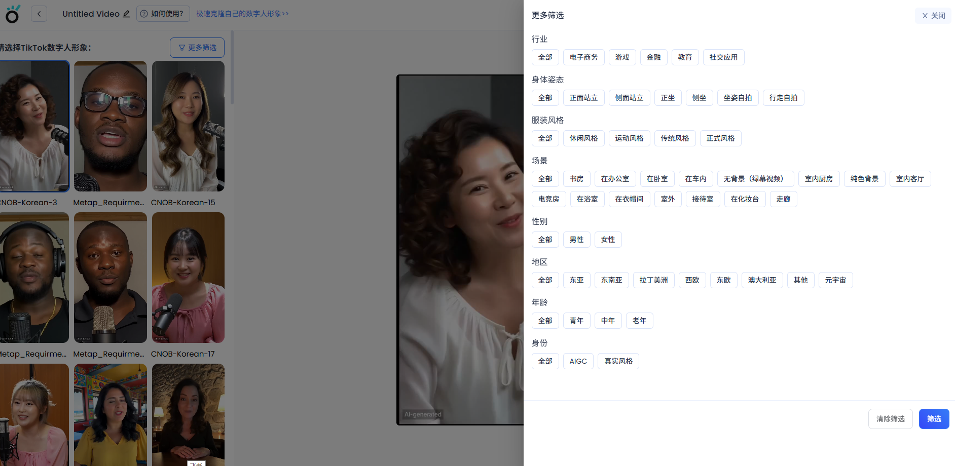 - 全新的标签筛选功能,让你快速找到理想数字人: