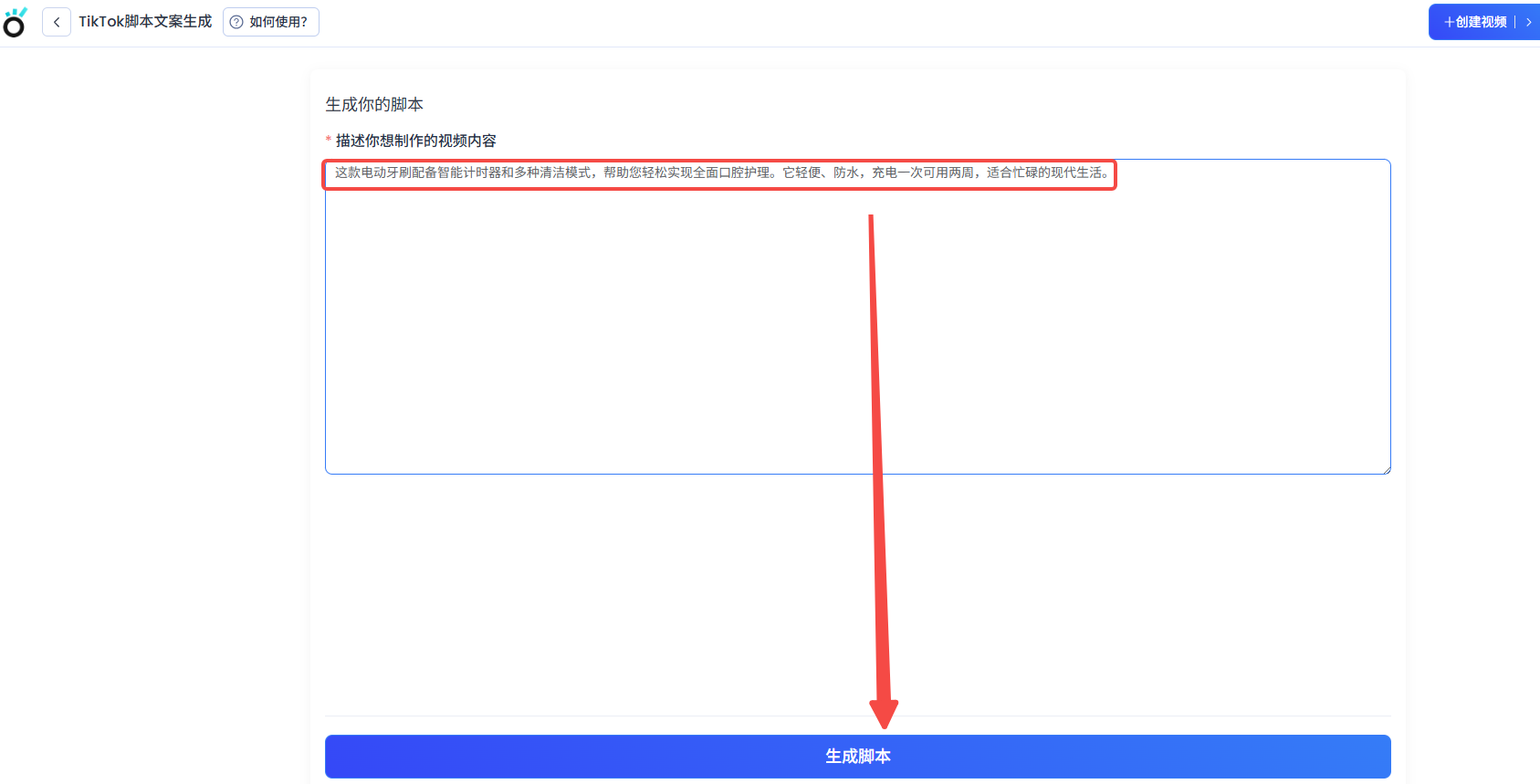 - 所有脚本均由AI生成,符合TikTok短视频风格,帮助你节省内容创作时间,提升视频表现力。