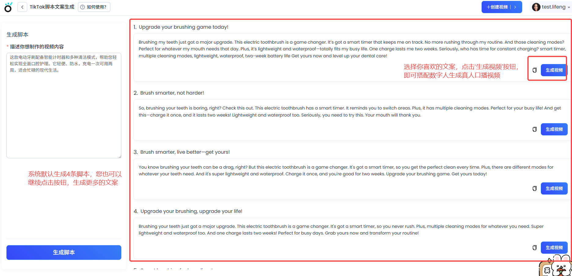 通过以上步骤,你可以轻松获得多样化、高质量的TikTok脚本文案,并快速制作成吸引人的数字人视频,提升营销效果。